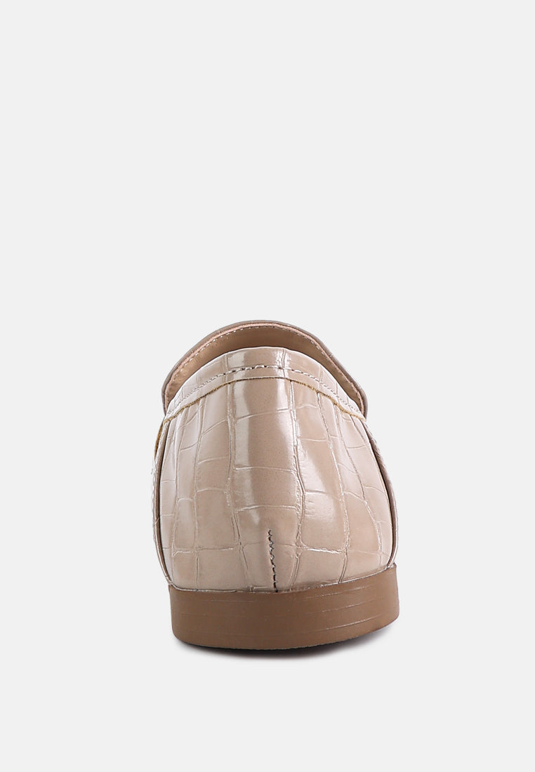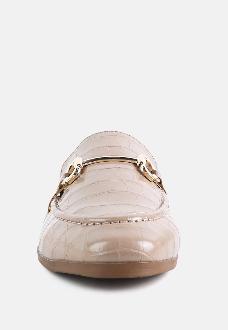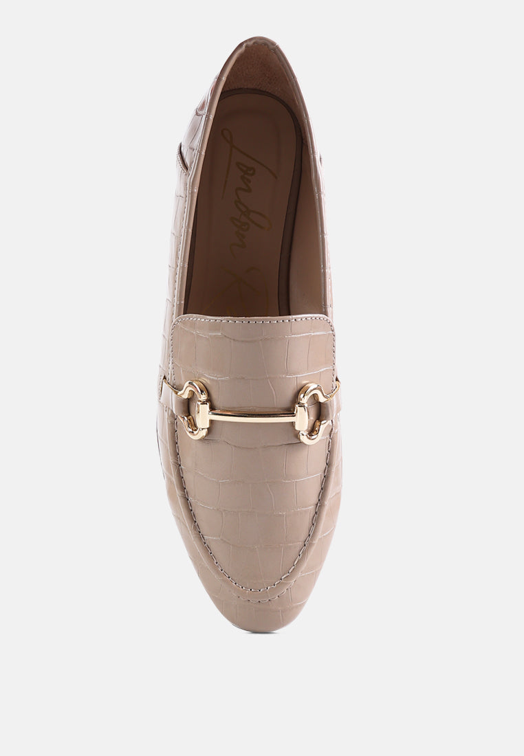 A premium loafer With a gold metal ornament on the top. Stylish semi casual faux leather shoe which suits and styles your formals well.