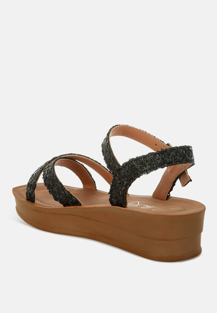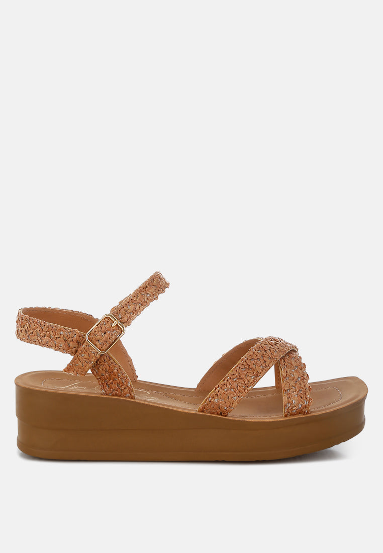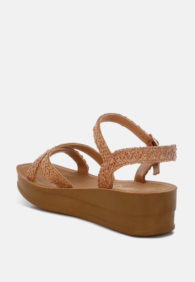 If you're looking for a versatile pair of footwear to take you through 9-5 and beyond, these wedges are just the perfect pick. Featuring criss cross straps with woven details all over, they make a stylish addition to your everyday looks. The comfortable cushion insole makes them suitable for day long wear while the pin buckle fastening adds to the convenience.