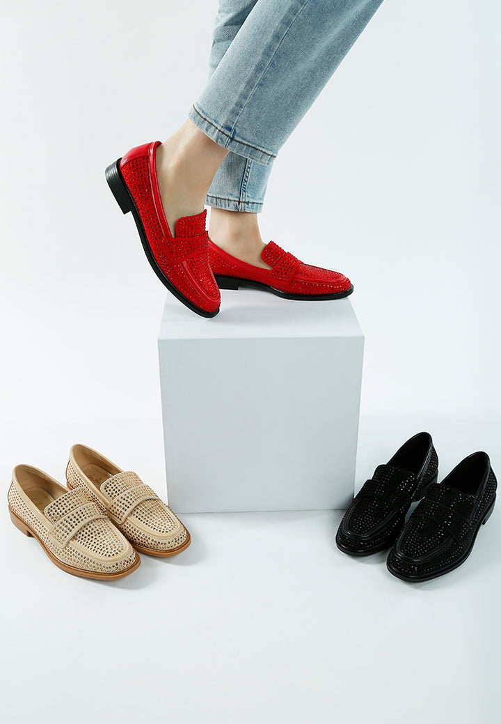 For those spring evenings when you're unsure what to wear to parties or a leisurely stroll, these embellished loafers are the perfect solution. The rhinestones adorned micro suede loafers are ravishing with the dazzling exterior and sure to turn some heads your way.