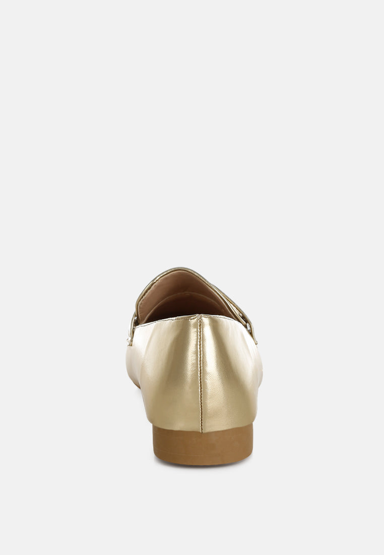 A staple in your shoedrobe, the flat loafers have a classic loafer design with a closed round toe and strap detail on the vamp with an added glamorous touch of the metallic exterior. The flat heels and soft cushion insoles cut strain and give a relaxed fit.