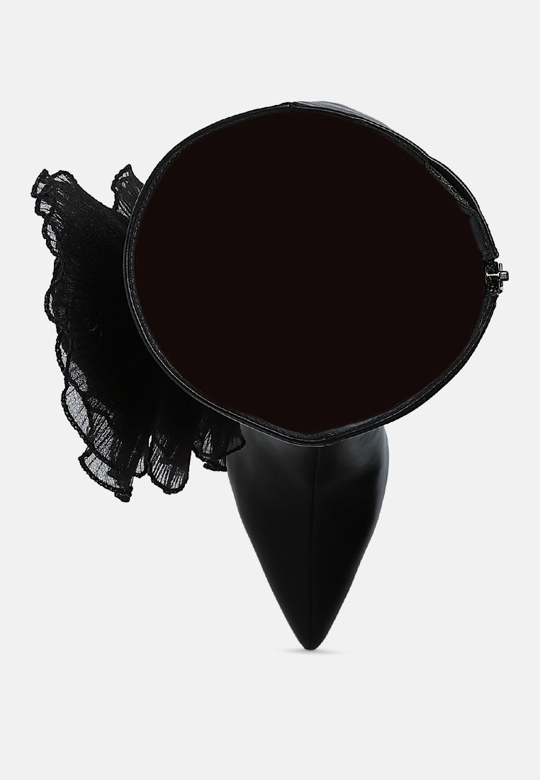 The long boots have an avant garde flair with the gorgeous accentuating sheer roses detail on the boots which exude a romantic charm. The boots are a statement piece and would definitely drop some jaws with their eccentric yet alluring visual appeal. Pair them with a cute mini dress or some short skirts for a ravishing ensemble.