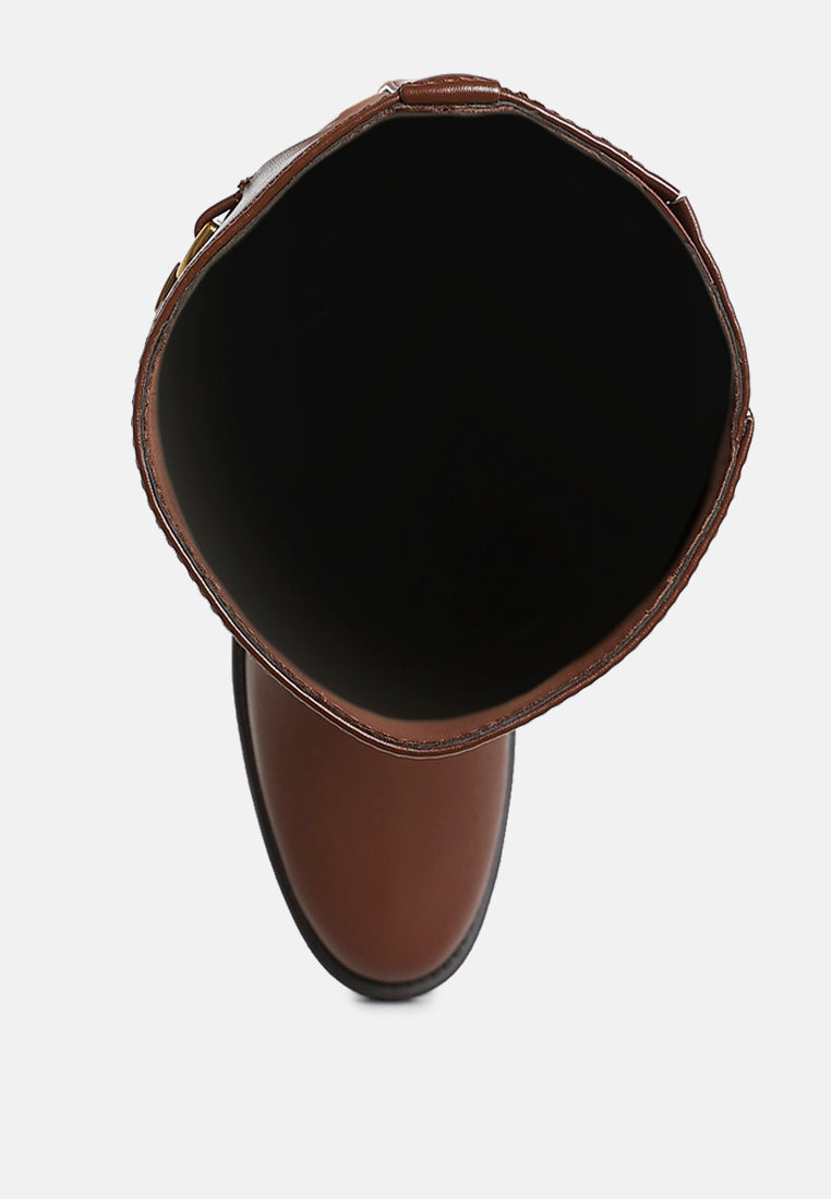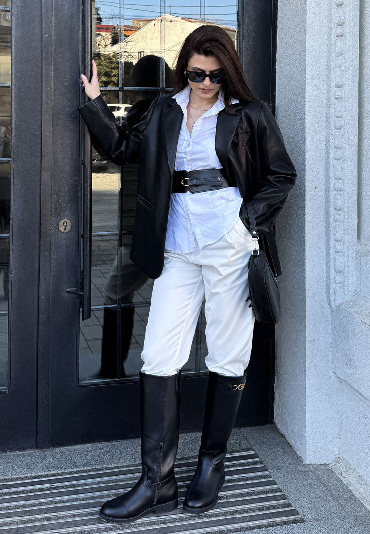 Turn your wardrobe into a dream with the stunning knee-high boots featuring bold metallic chain accents. Designed in a classic silhouette, they pair seamlessly with any outfit. A side zip ensures easy wear, while the 1 inch block heel adds just the right amounts of comfort and style