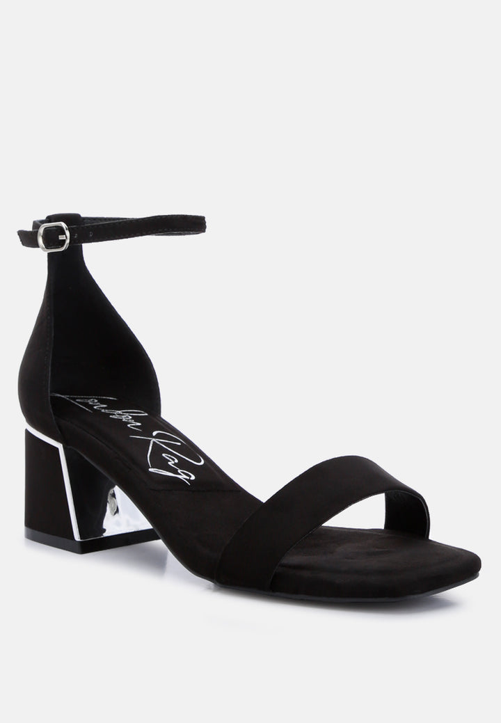Versatile, minimal, and sublime, the sandals are an ageless pair with their classic design. The ankle strap encases feet beautifully while offering a secure fit while the soft cushion insoles cut strain. The metallic accent on the heel elevates the overall construction and makes the heels perfect for a minimalist bride as bridal heels or also make a great base for an intriguing ensemble.