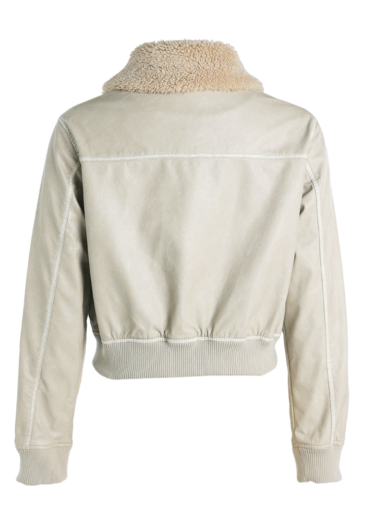 Stay on trend this season and beyond with this stone-toned, soft faux fur collar short jacket. Made from a blend of cotton and faux leather, it features a cozy contrast collar, zip-up closure, and a chic cropped fit—too good to resist! Pair this jacket with a white tee, mini skirt, and boots for a look that’s sure to score major style points.