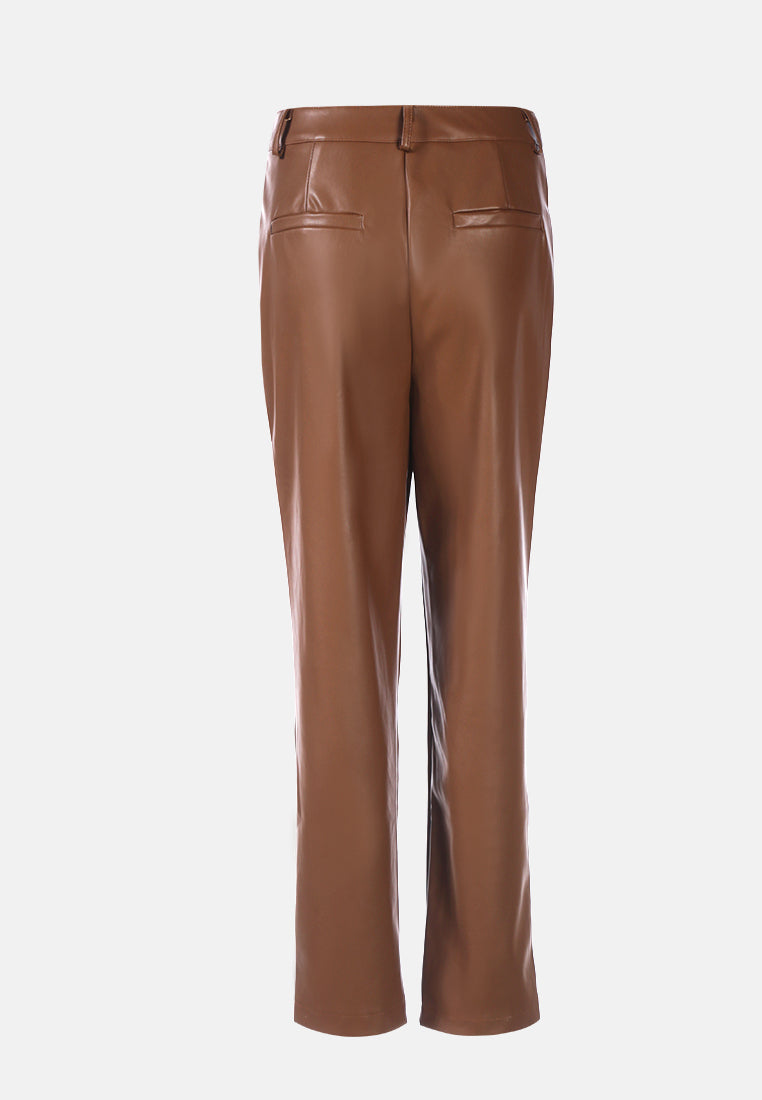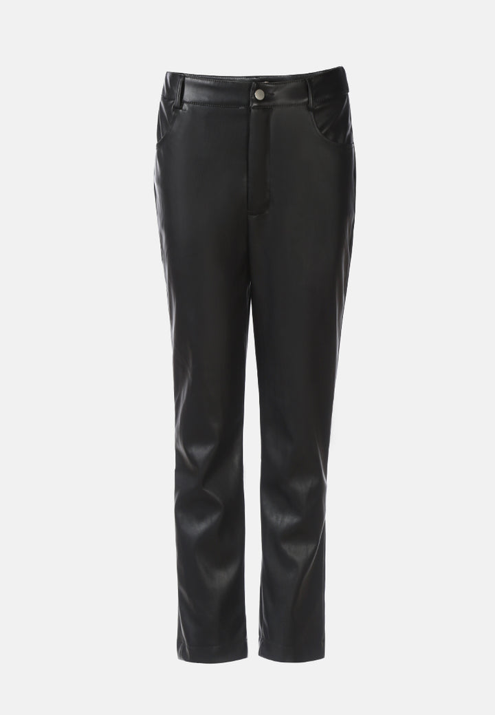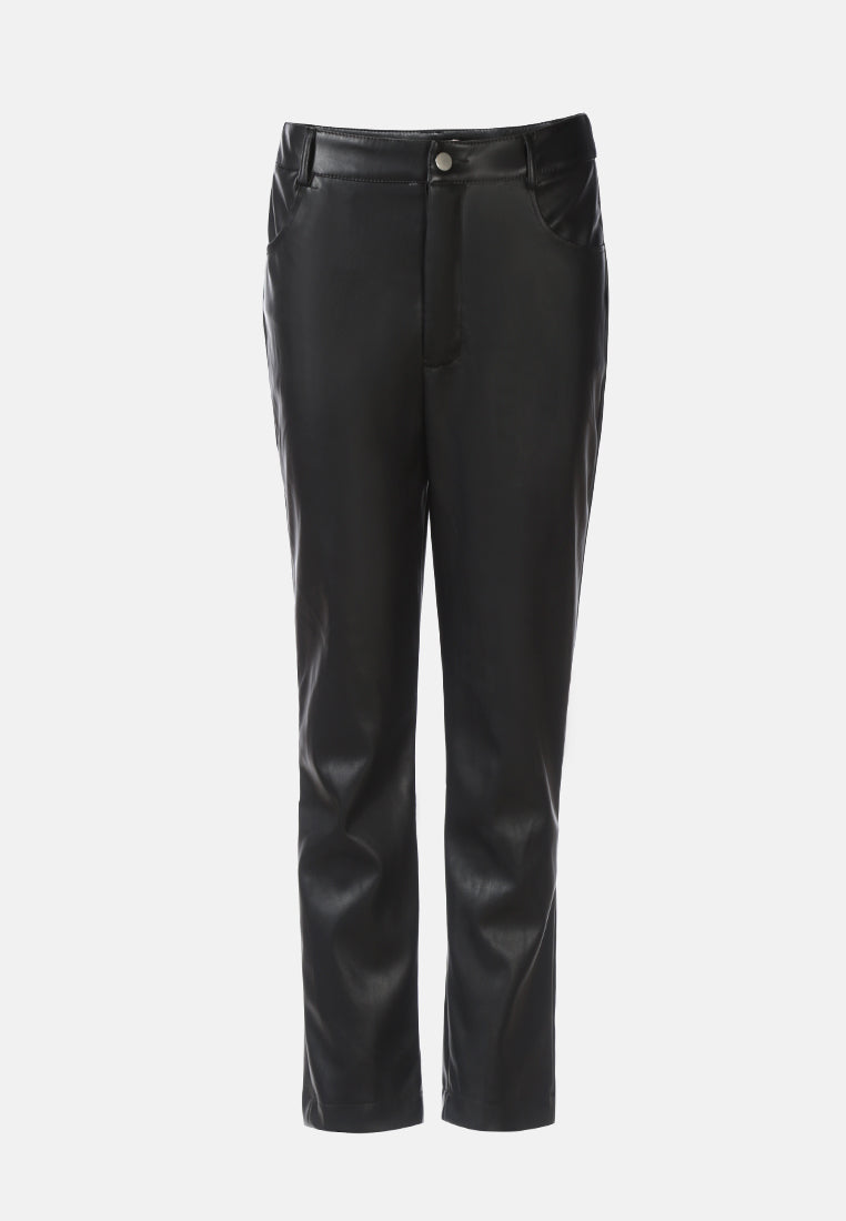 Faux Leather Straight Leg Fit Trousers with two side pockets at front and back, style this solid pair is a staple this season.