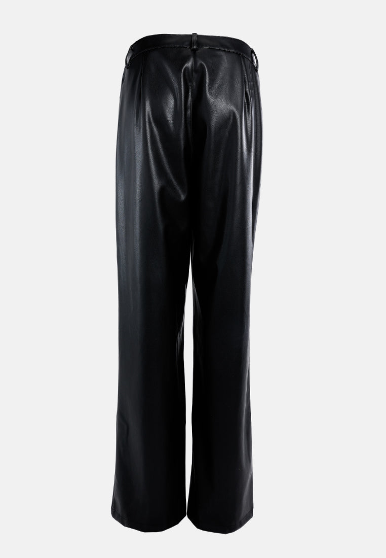 low waist faux leather flare pants#color_black