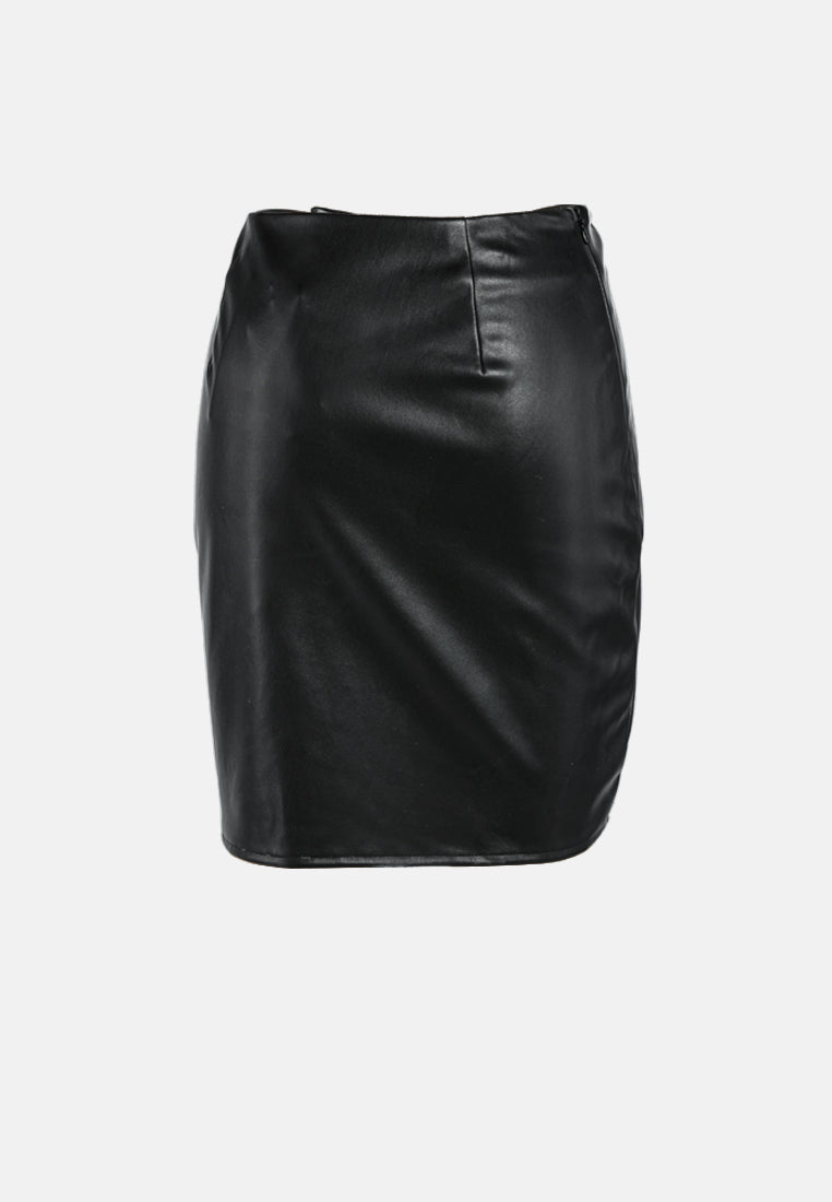 Go no further for a statement PU faux leather skirt. The above-the-knee ruched skirt fits well, looks gorgeous and the bow detail can be self-styled. It has concealed zipper at the sides and structures well with dart construction. With a warm and breathable inside, this is easy on the skin.