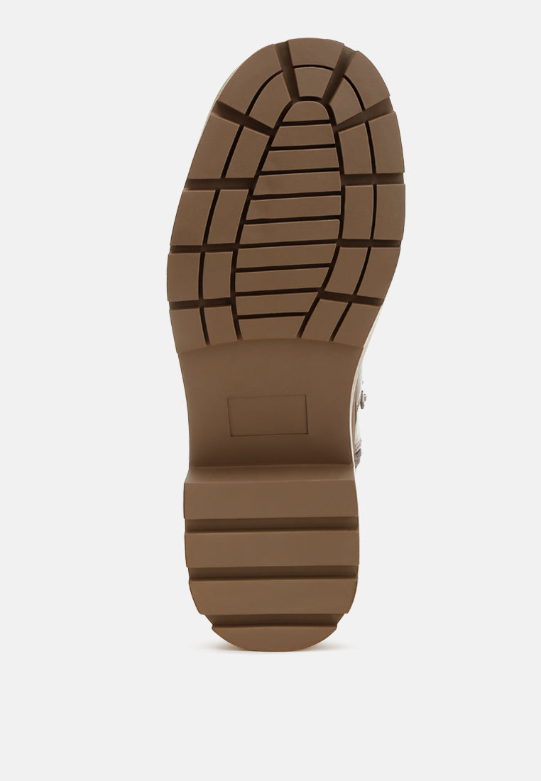 The chunky boots have an anti skid lug sole with low block platform heels which is ideal for the snow days while the comfortable cushion insoles cut strain. The design is minimalistic yet stylish which makes them an ideal pair for your daily use.