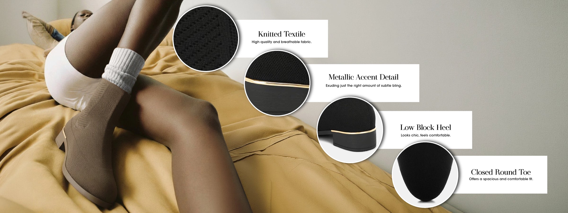 These sock boots are sure to take your style game to the next level. They feature a knitted upper and comfortable cushioned insoles that cut strain and provide a seamless fit. The low block stacked heel with a metallic accent detail elevates the look. Team these boots with your varied outfits to make a statement.