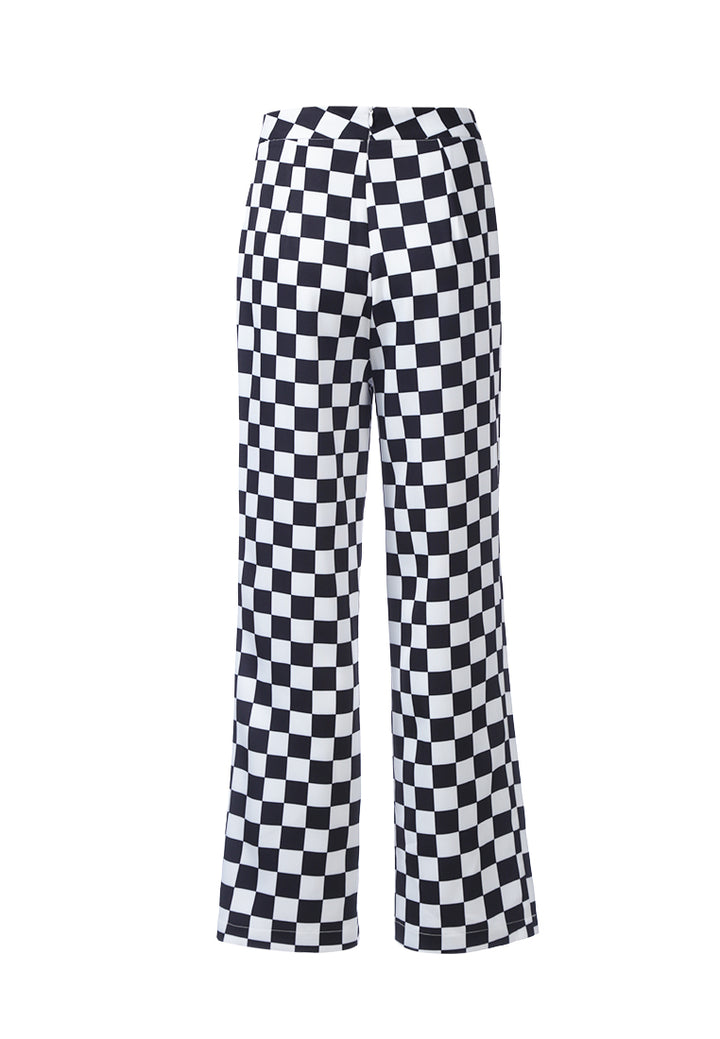 Checkerboard Pattern parallel Culottes slip-on pants, the stretchy pair of bottoms are comfortable and attention grabber