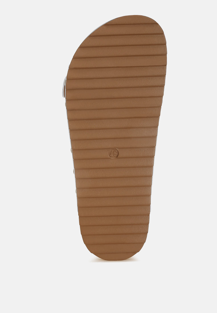 Are you even living in the 21st century modern era if you don't own a pair of these slip ons? Stylish, versatile, and a rad aesthetic with the cork detail and double pin buckle vamp, the pair is also comfortable with the flat platforms. The slip on design gives them an easy to wear experience, perfect for daily wear. A personal styling tip? Pair them with your favorite socks for a trendy chic look!