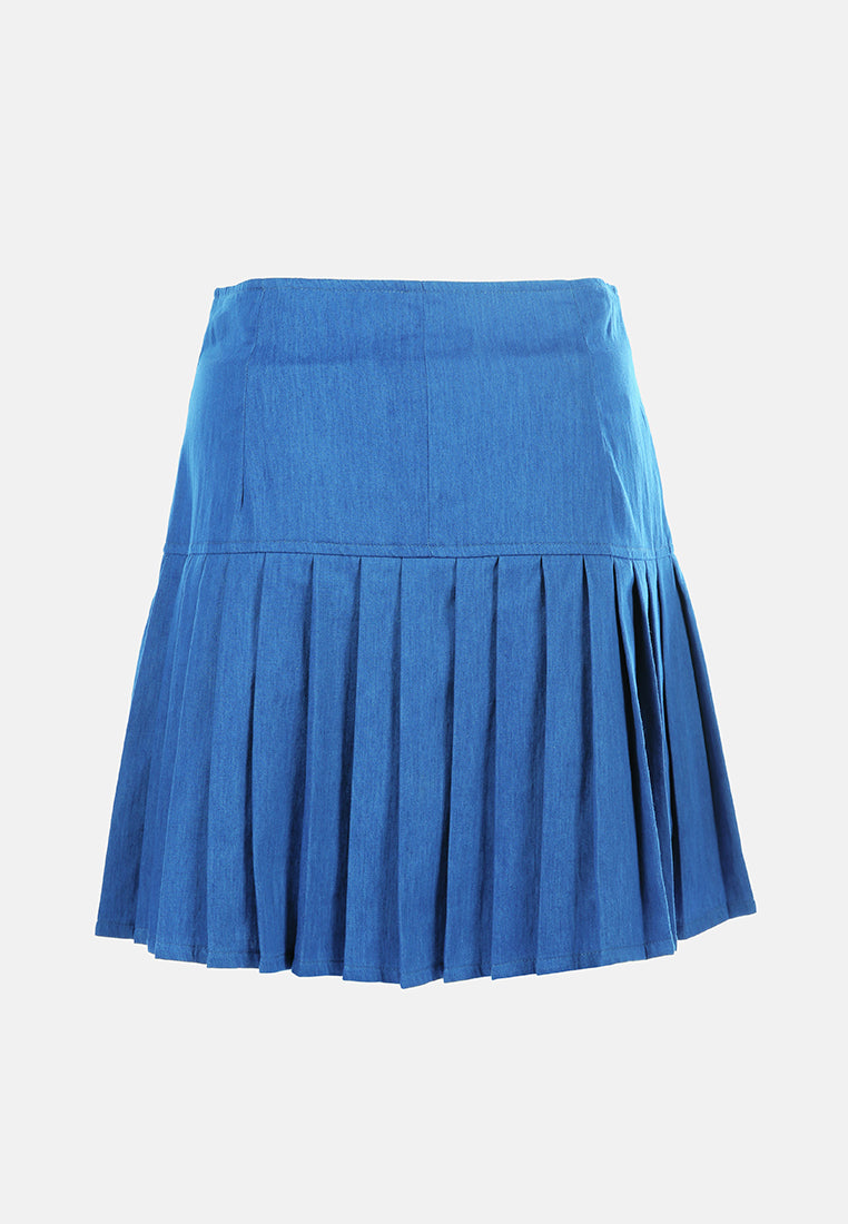 pleated drop waist godet skirt in blue#color_blue