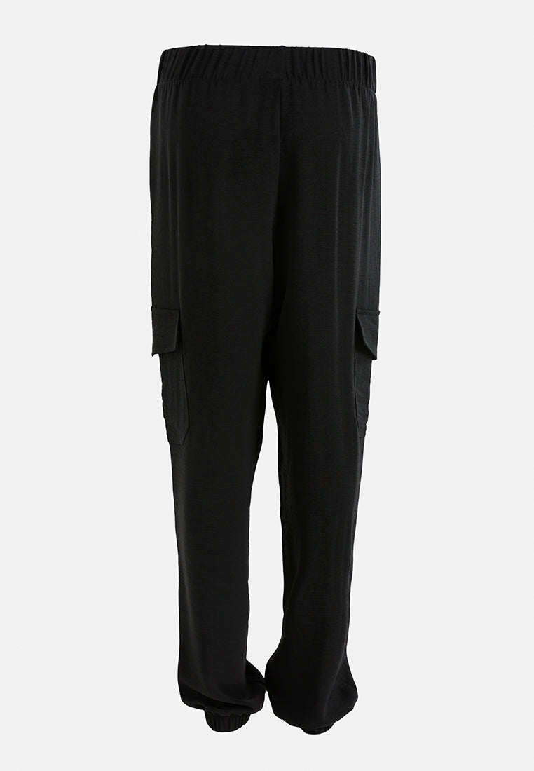 Upgrade your fashion game with our High-Rise Cargo Drawstring Joggers. These trendy joggers combine comfort and fashion seamlessly. Featuring a high-rise fit and an adjustable drawstring waist, they provide a flattering silhouette while the cargo pockets add chic touch. Stay comfortable and stylish wherever you go in these versatile joggers.