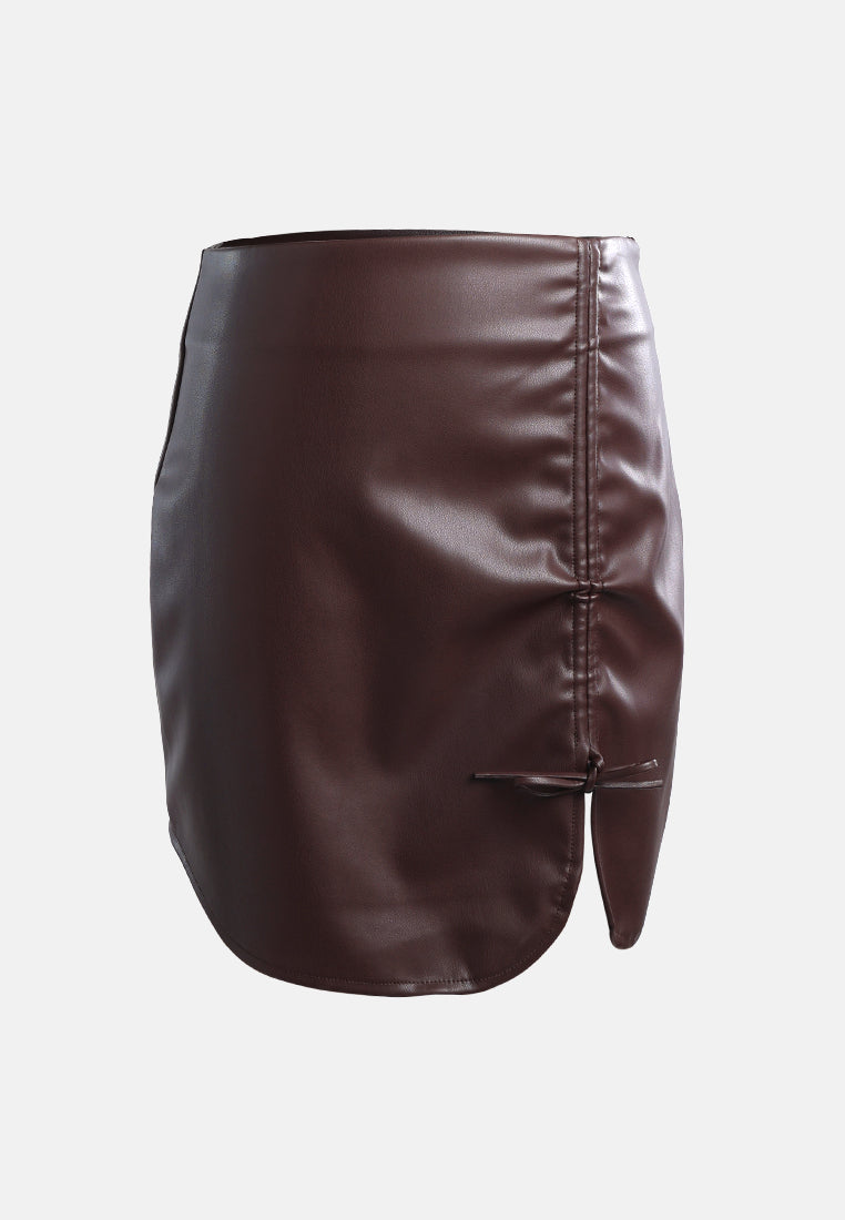 London Rag Chocolate Women'S Faux Leather Mini Skirt