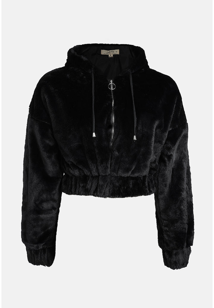 With high collars and full sleeves, this furry jacket is a must-have for everyone out there! It is designed for cozy weekend getaways or for a chilly relaxing kinda day. The elasticated hem and sleeves with a warm hoodie design adds an element to the jacket.
