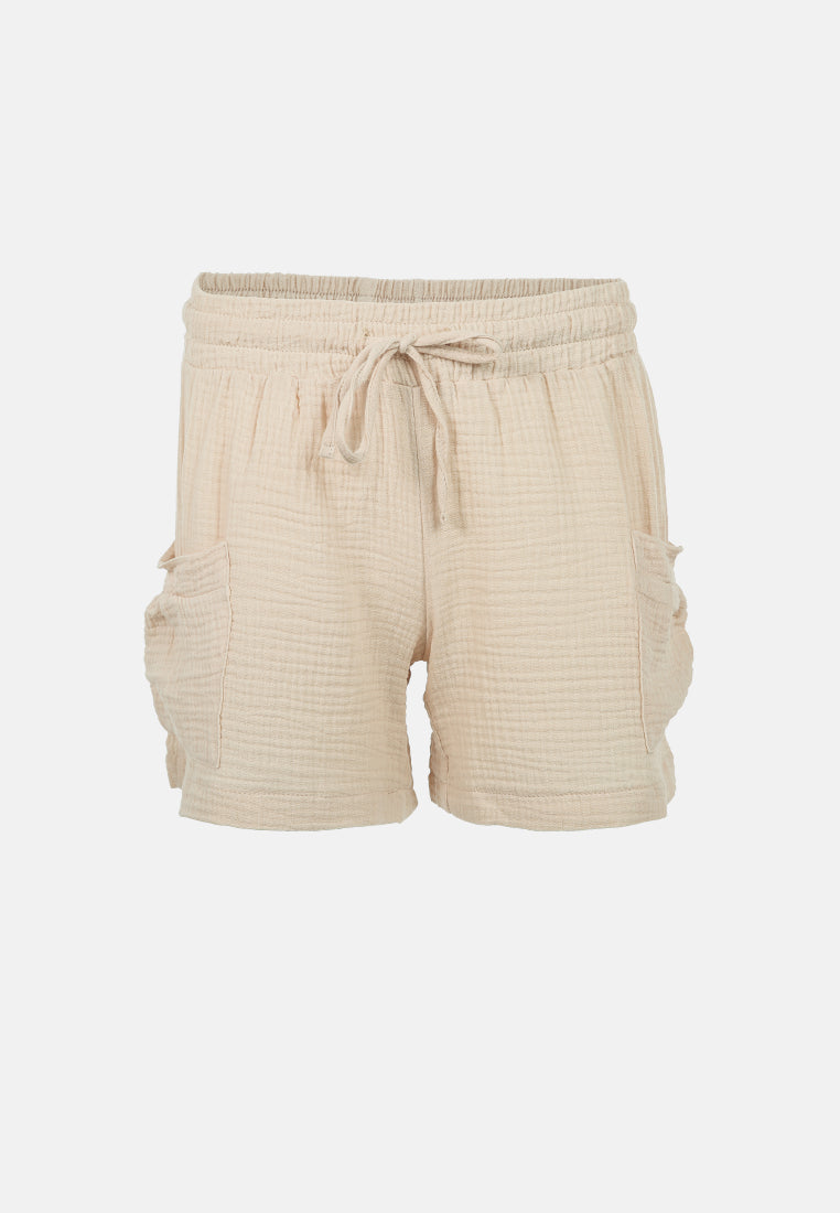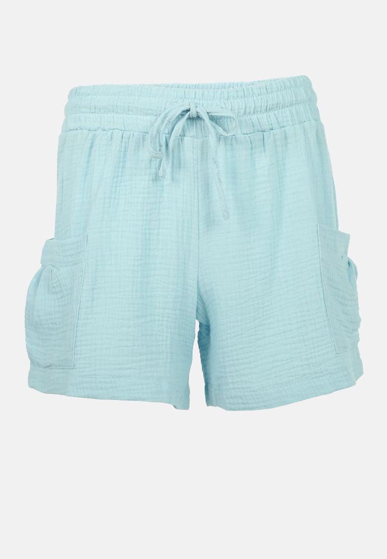 Be beach-ready and into the vacay mode with these light and comfy loungewear summer shorts. These come with an elasticated waistband and drawstring and have two pockets at the sides.