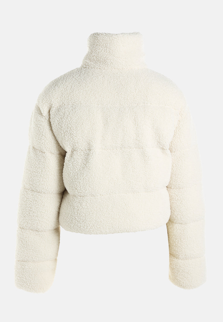Ravishing and cozy, the faux shearling jacket is sure to elevate any basic fits you own with its exaggerated silhouette. The inner lining is soft on the skin and ensures a comfortable fit. The zipper closure is convenient and easy to wear.