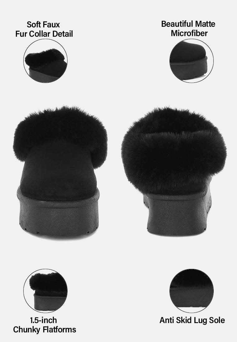 Stay cozy and stylish with these warm snow boots that feature a convenient slip on design. The soft faux fur detail adds an element of whimsy while the lug sole provides elevation. The soft cushion insoles ensure a comfortable fit and optimum support. This pair can be teamed with your varied winter-ready ensembles.