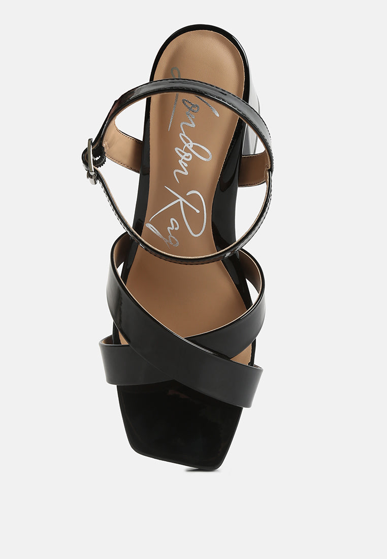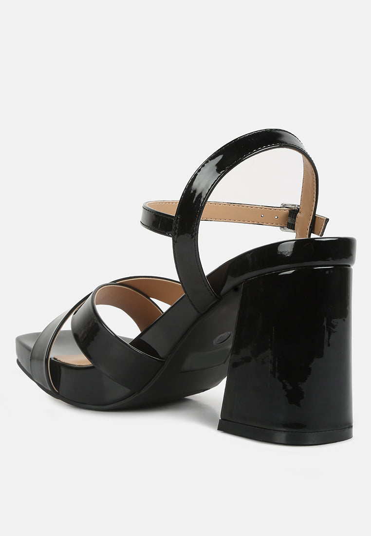 Las sandalias simples pero atractivas son atemporales y elegantes con un hermoso brillo de cuero con falso patente. Las sandalias de los tacones de bloques también son cómodas de usar con plantillas suaves y acolchadas. ¡Son versátiles y se combinarían maravillosamente con casi todos los atuendos!