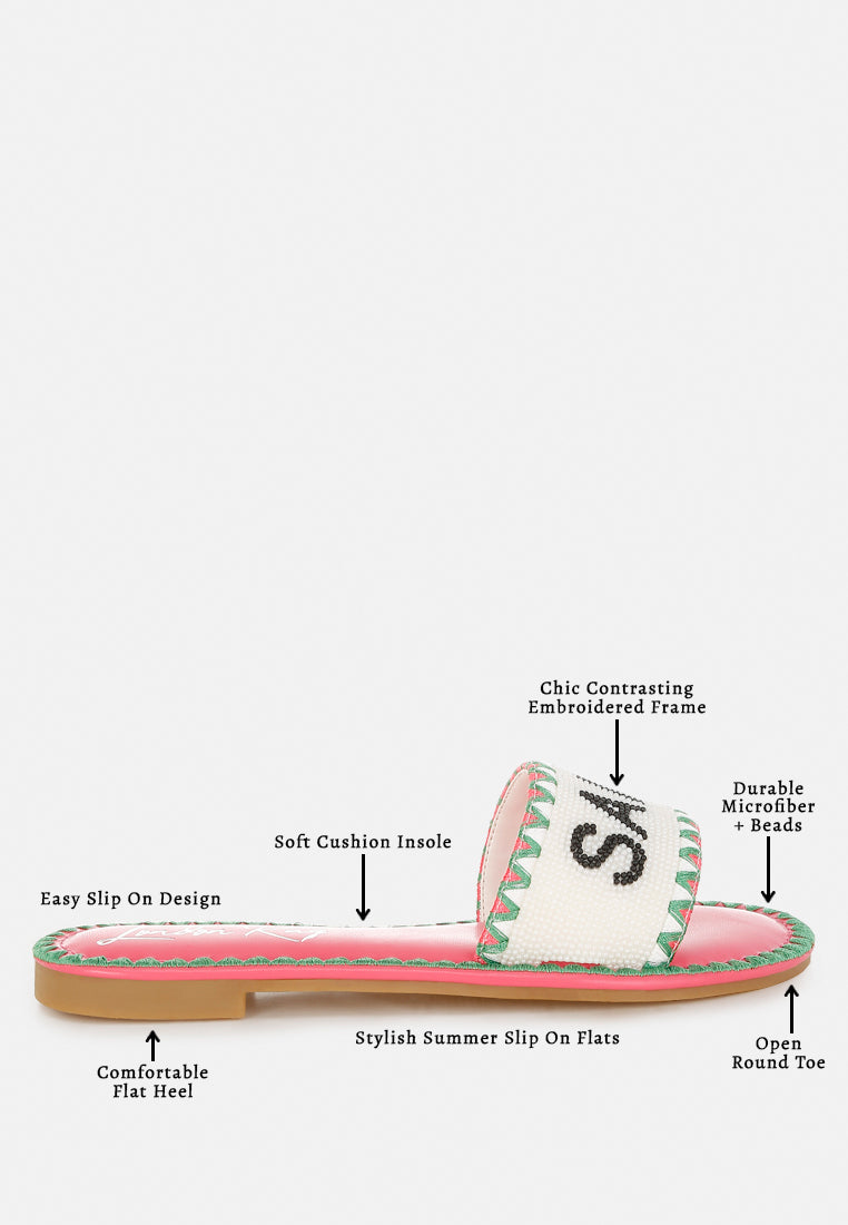 London Rag Getaway Beaded Saint Tropez Flat Slip Ons