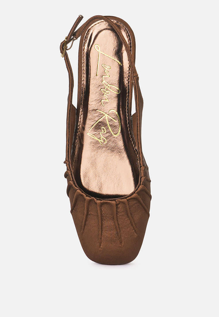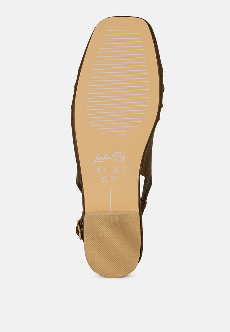 A feminine flair, sleek cuts, and a classic square toe set this stunning slingback apart. Crafted with luxurious satin, these are secured with supportive and adjustable slingback straps. Team them up with partywear, workwear or denim for a look you can't go wrong with!