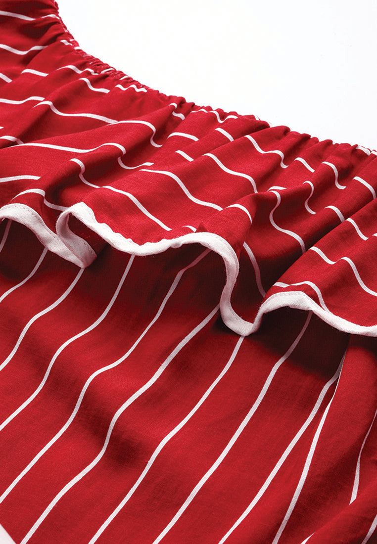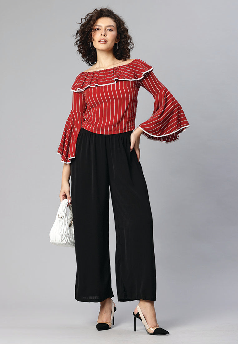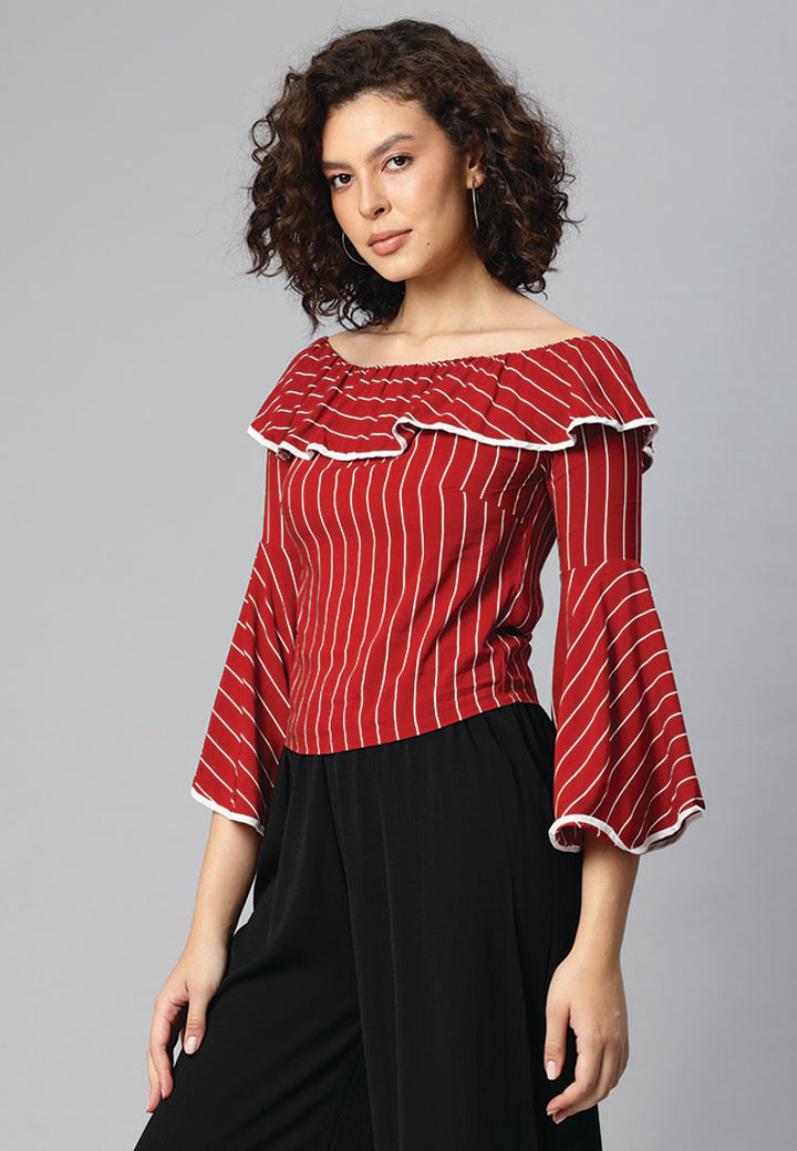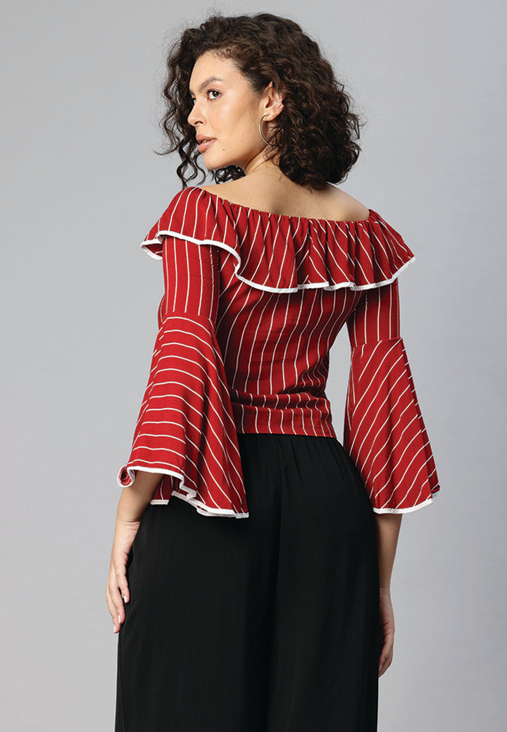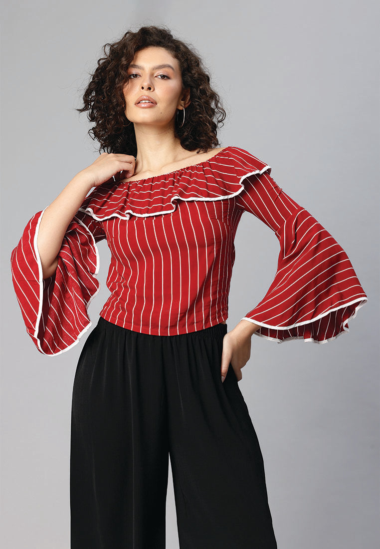 - 搭配並炫耀它。花卉印花,肩膀不肩部,荷葉邊下擺,喇叭形袖子柔軟舒適的面料為夏季團隊團隊帶有纖細的合身或撕裂的牛仔布和泵,看起來很熱。