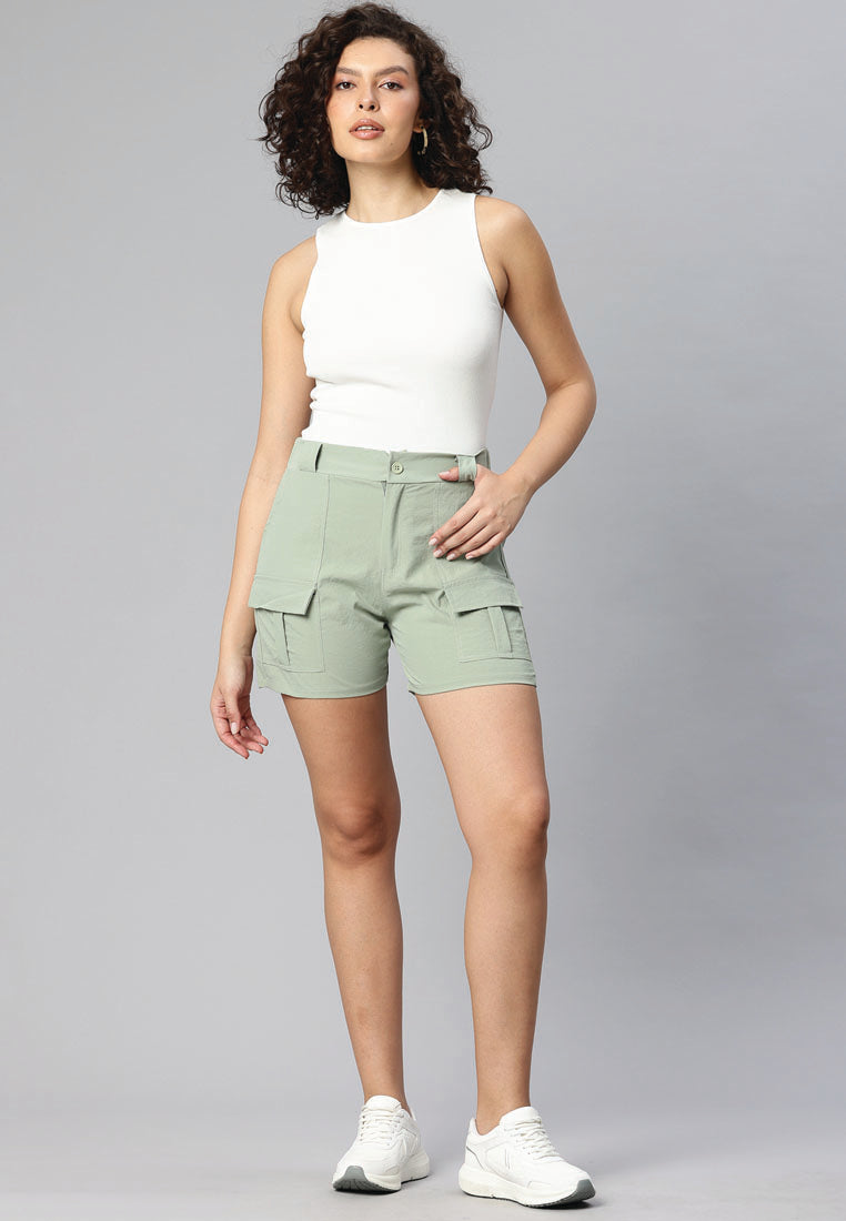 belt loop solid cargo shorts#color_light-green