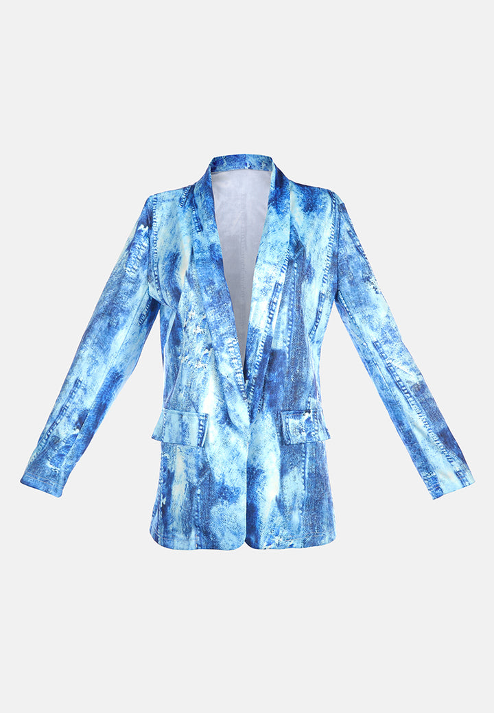 柔軟的皮膚織物上的印刷休閒西裝外套,具有色彩的色彩,並在身體框架上良好。它具有兩個側縫口袋,可增添外觀。無用的休閒風格是針對早午餐日期所需的所有類型的分層。